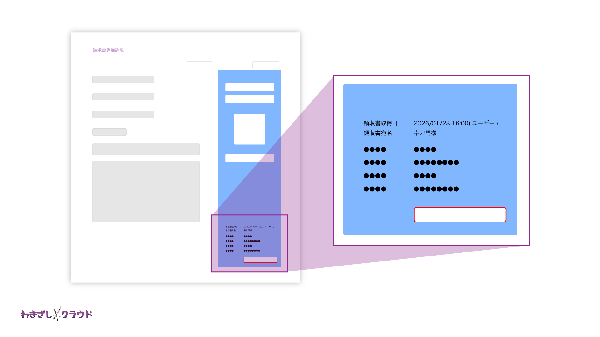 わきざしクラウドの管理画面、請求書の詳細より確認できます。